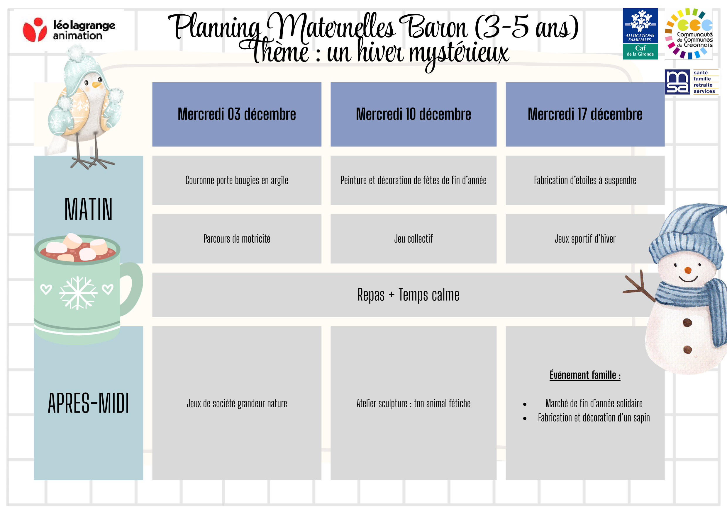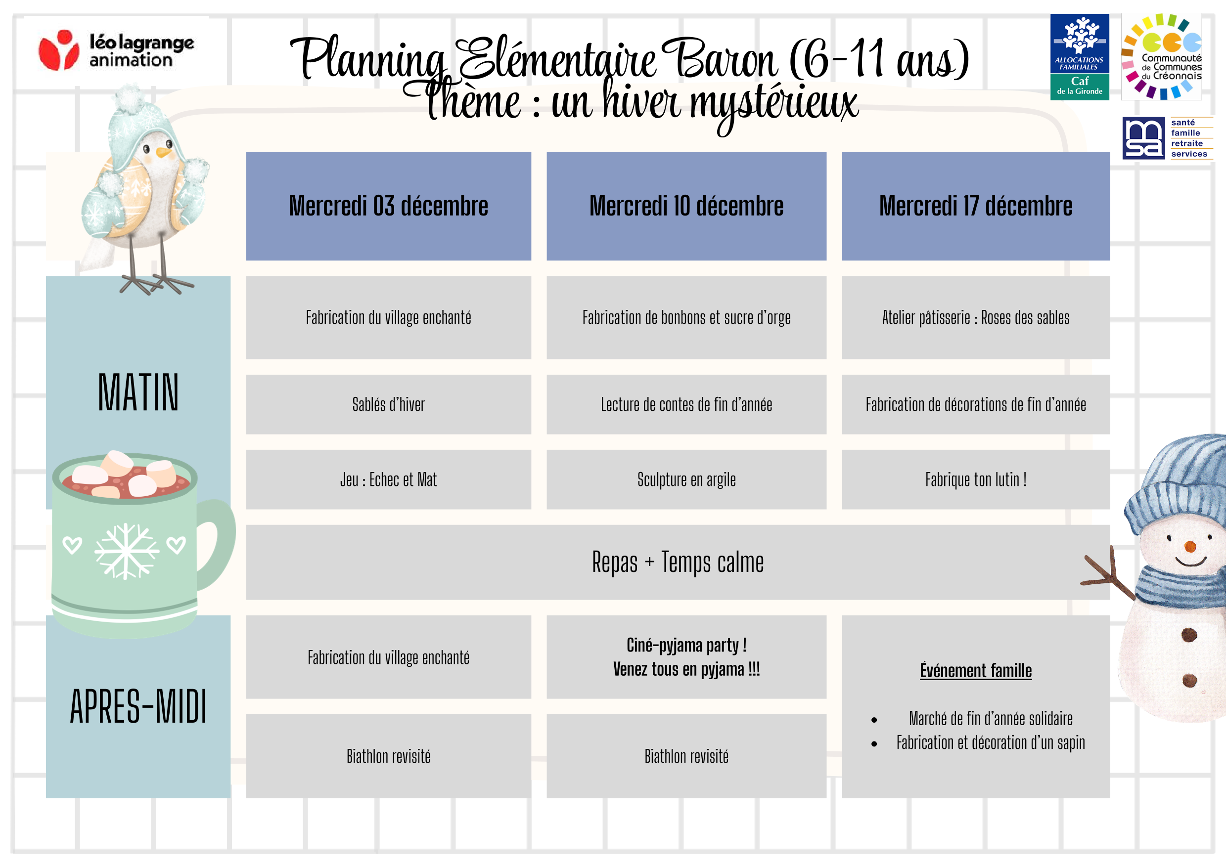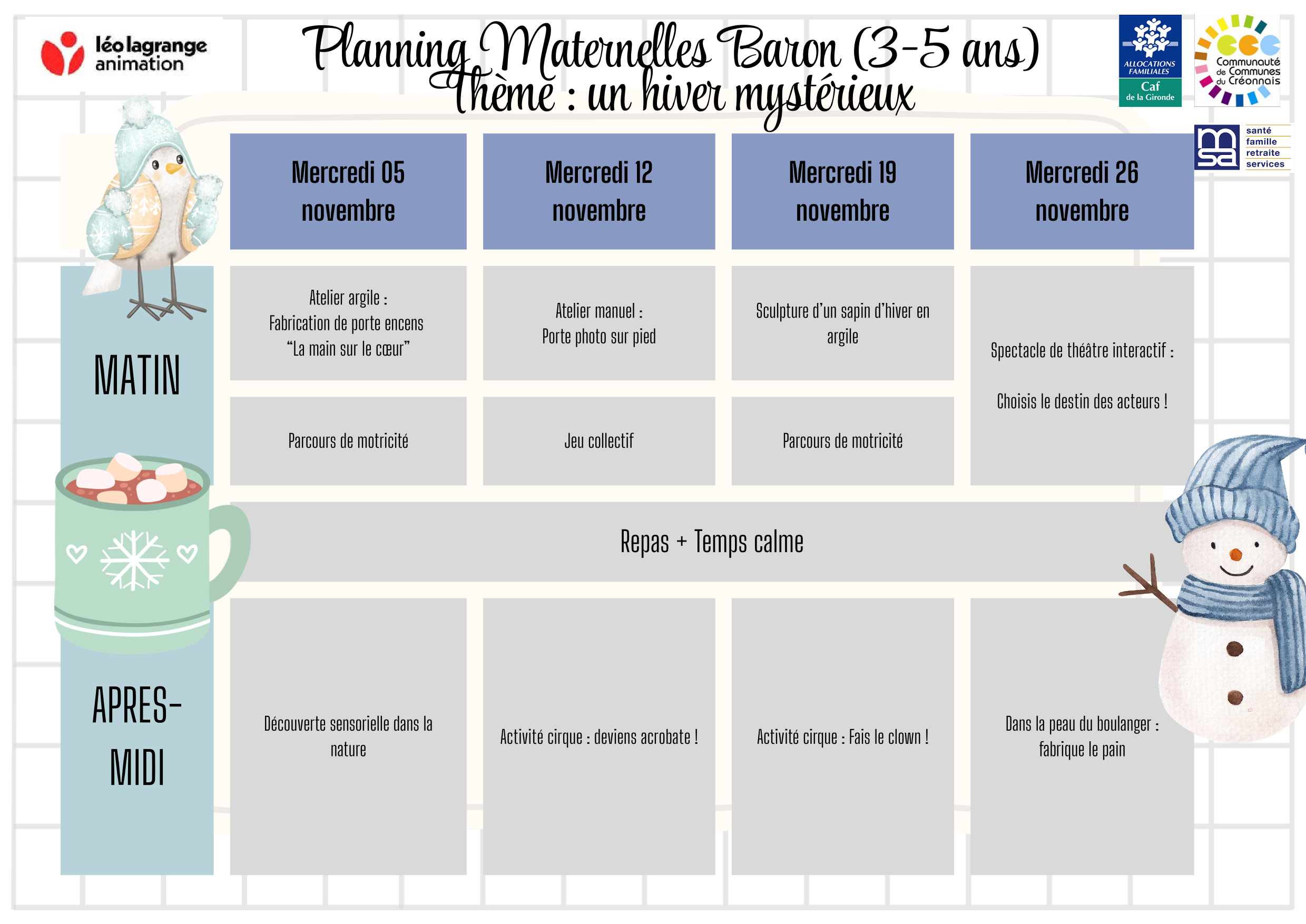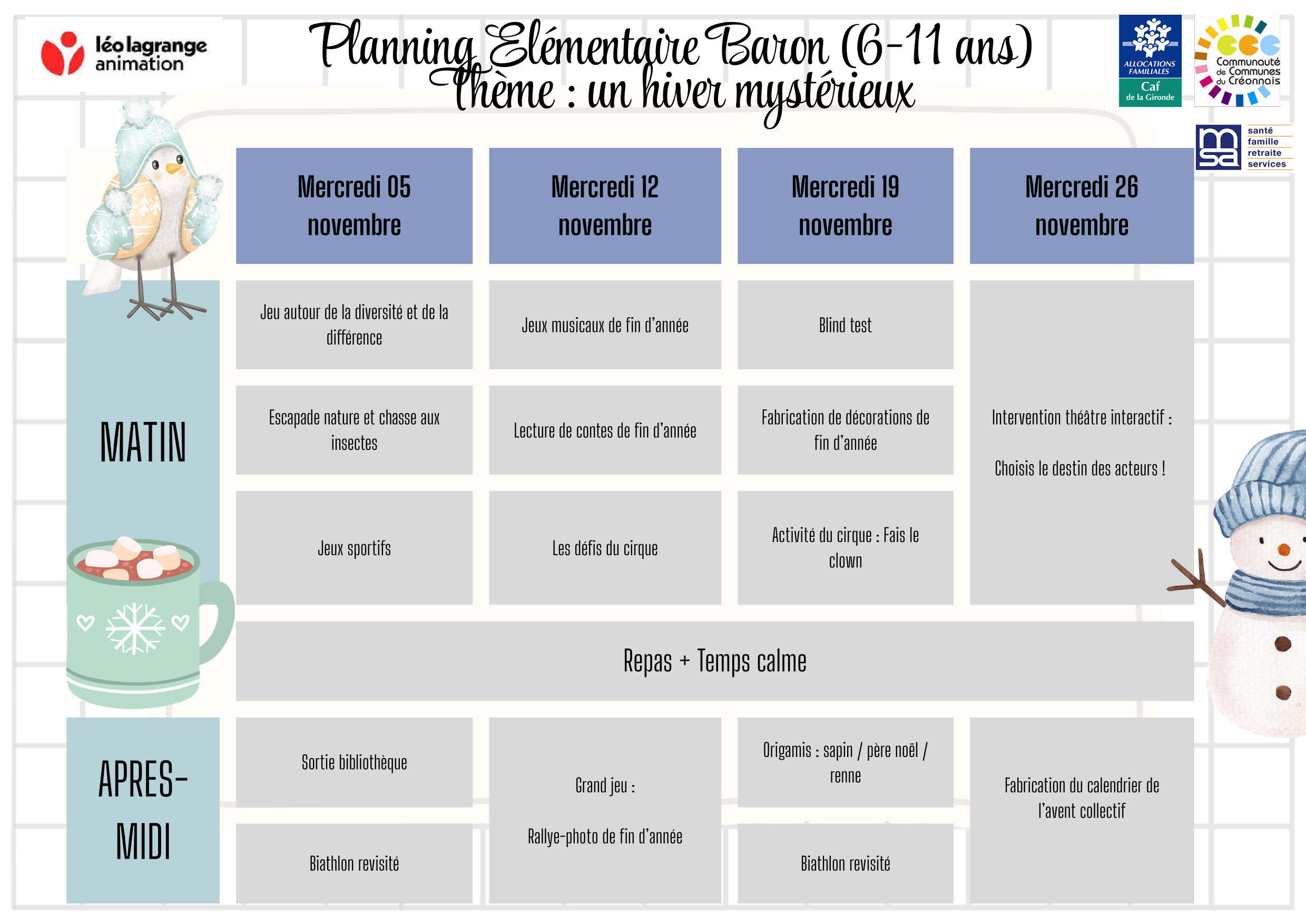 ALSH DE BARON - PROGRAMME MERCREDIS NOVEMBRE - DECEMBRE