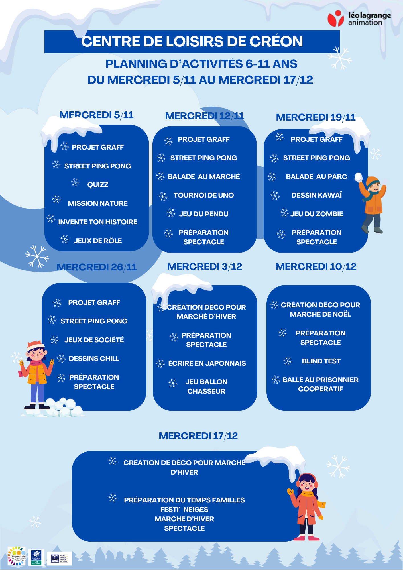 ALSH CREON - PROGRAMME DES MERCREDIS - NOVEMBRE - DECEMBRE
