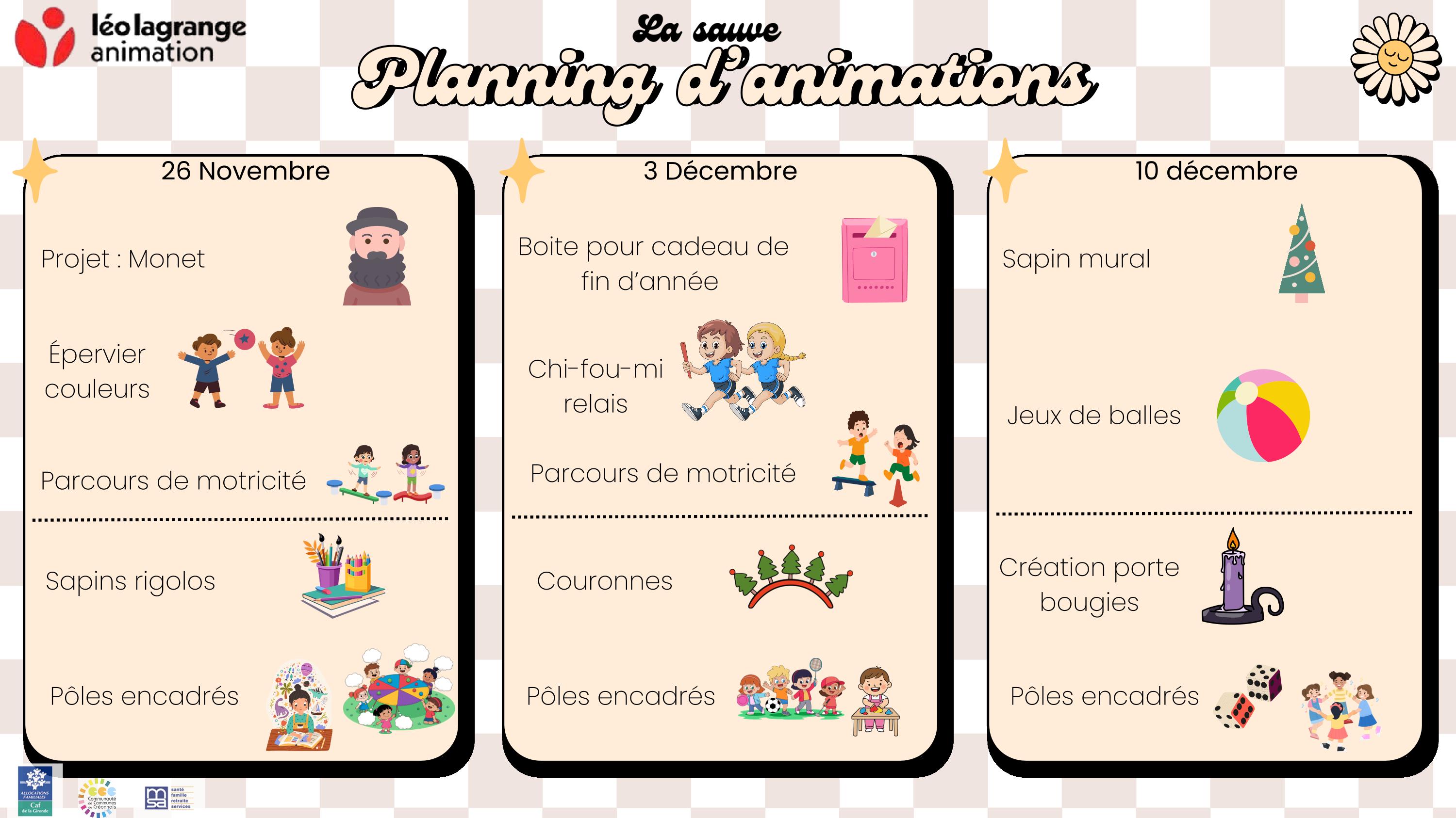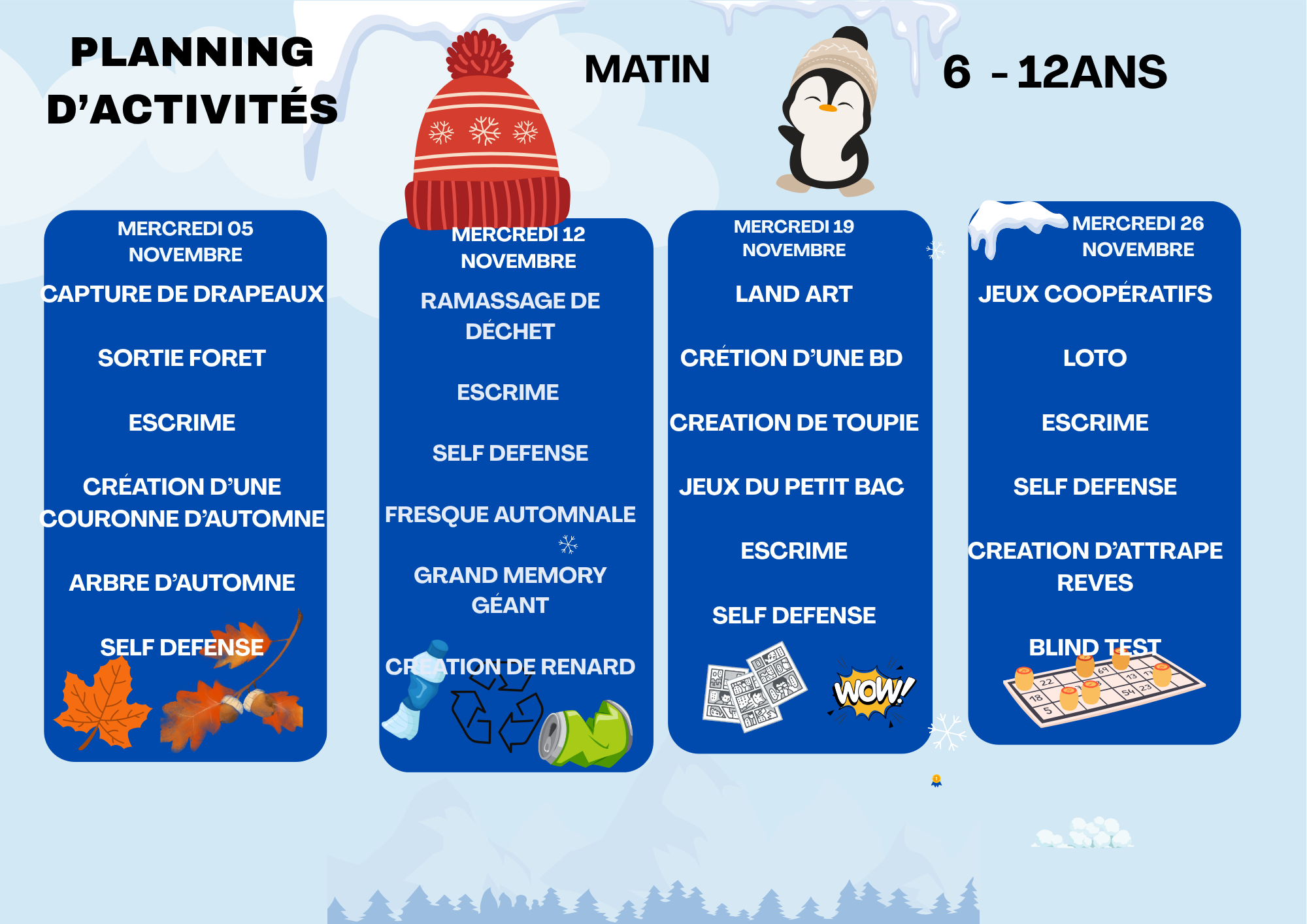 ALSH DE LA SAUVE - PROGRAMME DES MERCREDIS - NOVEMBRE DECEMBRE