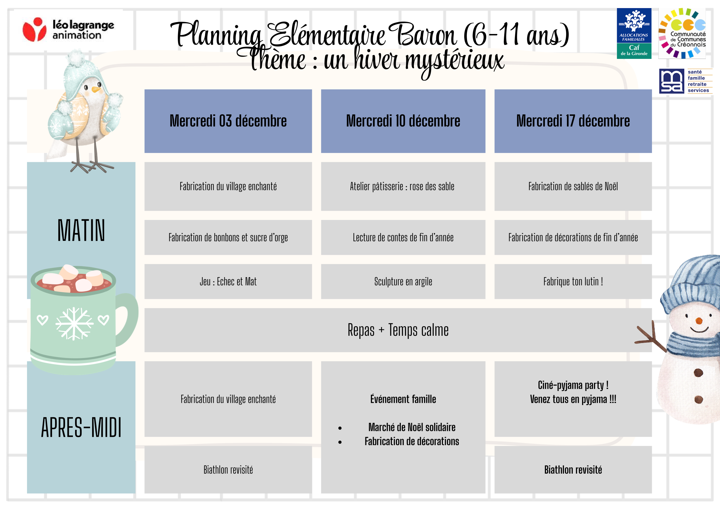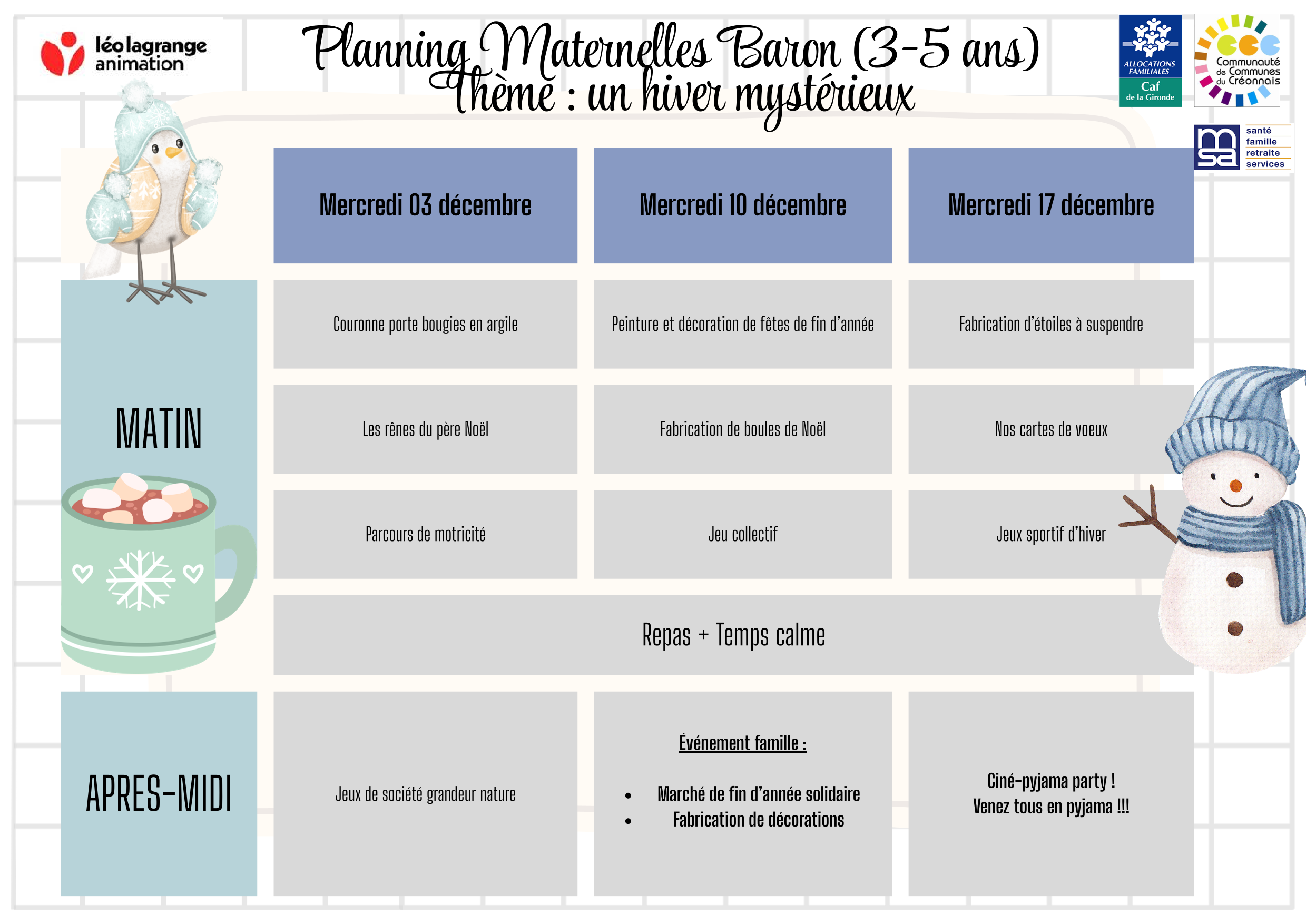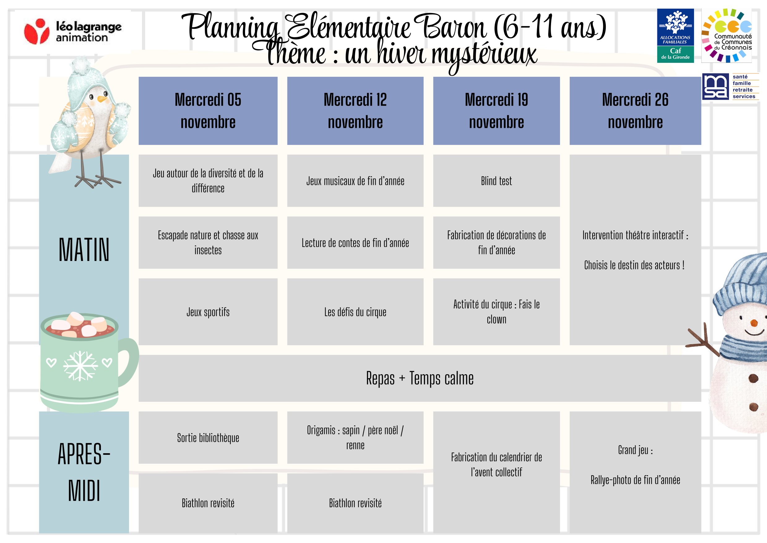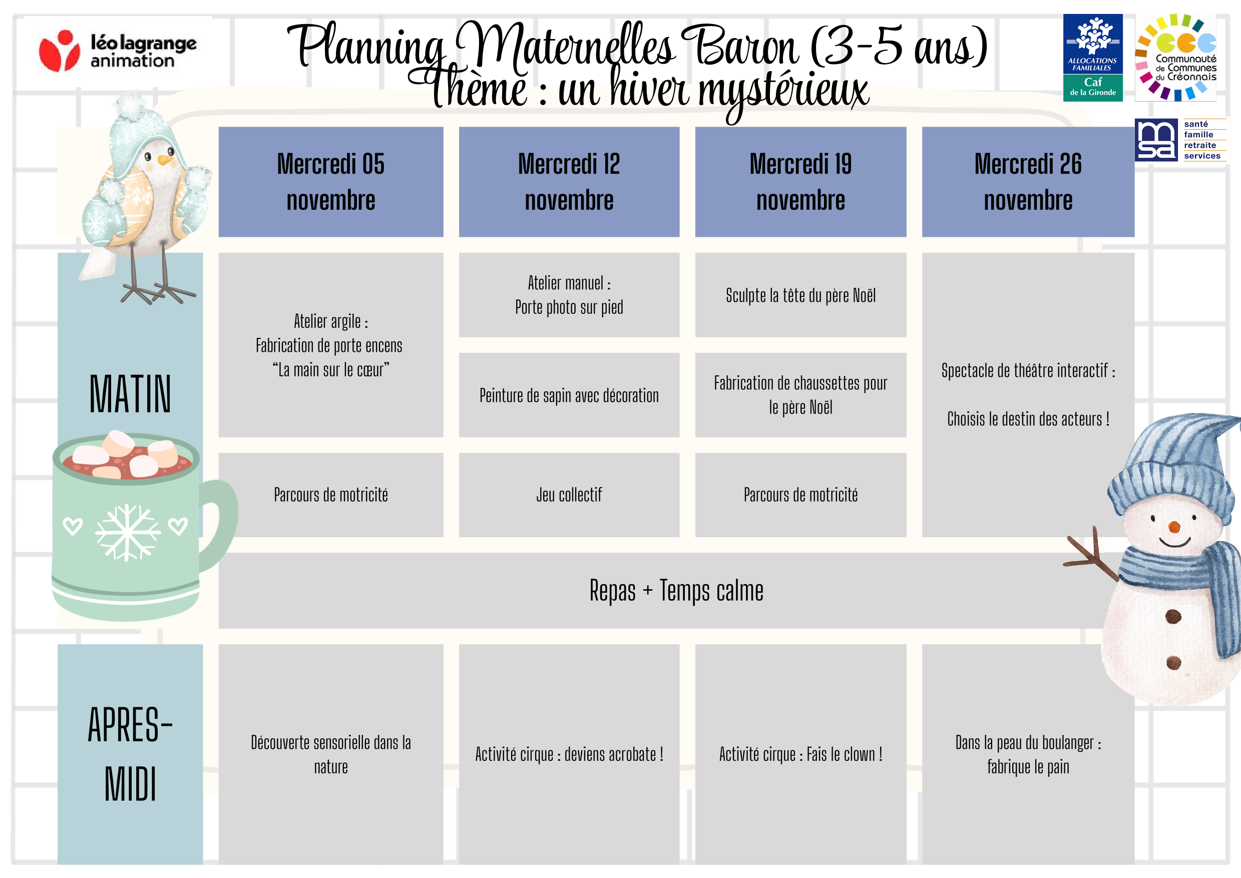 CENTRE DE LOISIRS DE CREON - PROGRAMME DES MERCREDIS - NOVEMBRE - DECEMBRE